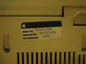 The serial and model number tags are located beneath the computer. I tried to do a search online but could not find out much information about this Apple Lisa. So if anyone knows how to decode the serial number to find out the manufacture date and other facts, do leave a comment.